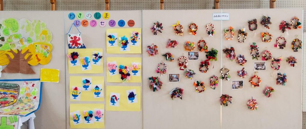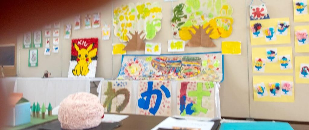 ふれあいサロンや、わきのしま児童センターの皆さんの作品です。お隣には「わかば」の作品もありました。写真に小さなカメラマンの指が写り込んでいますが、ご愛嬌ということでお許しください。