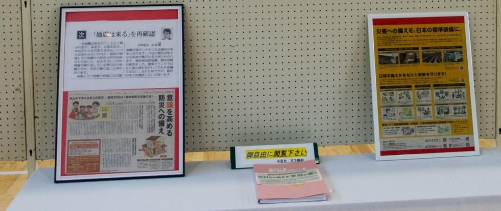 地域でのラジオ体操の様子など、日々の活動を記録した写真も展示されています。